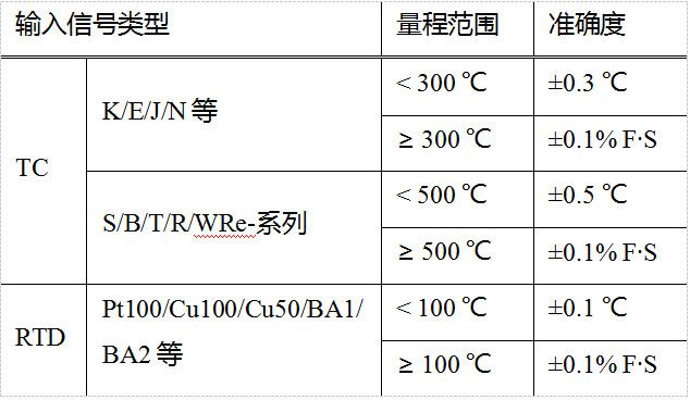 輸入信號:熱電偶:K、E、S、B、J、T、R、N及WRe3-WRe25、WRe5-WRe26等;