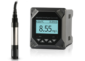 采用極譜式電極,陽電極為Ag/AgCl、陰電極為鉑金(Pt)組成,兩者之間充滿特殊成份的是電解液。由硅橡膠滲透膜包裹于電極四周。測量時,電極間加上675mV的極化電壓,氧滲透過隔膜在陰極消耗,同時等量的氧在陽極產生,這個動態過程進行到兩邊的氧分壓相同時達到平衡.此時兩電極間的電流與氧分壓成正比,二次表檢測到此電流,再經過一系列變換,得到氧濃度和氧含量.同時,NTC(負溫度系數熱敏電阻)檢測被測量液的溫度,二次表采樣后進行溫度補償,將氧濃度或氧含量折算成25℃時的值。